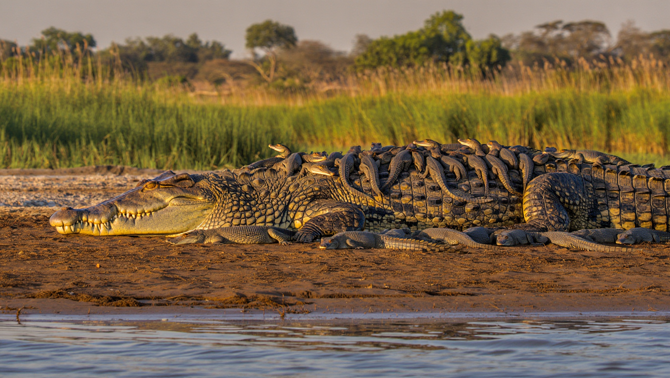 把小鳄鱼驮在背上并不是出于“可爱”,而是一种生存策略。 刚孵出的幼崽身体脆弱,极易遭到鸟类或其他掠食者的攻击。 有了父亲的保护,它们更安全地进入水域,生存几率也大大提升。