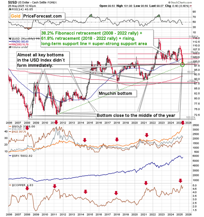在每种情况下,当我们看到USDX中的主要底部时 – 贵金属行业和铜的下降都大幅下降。
