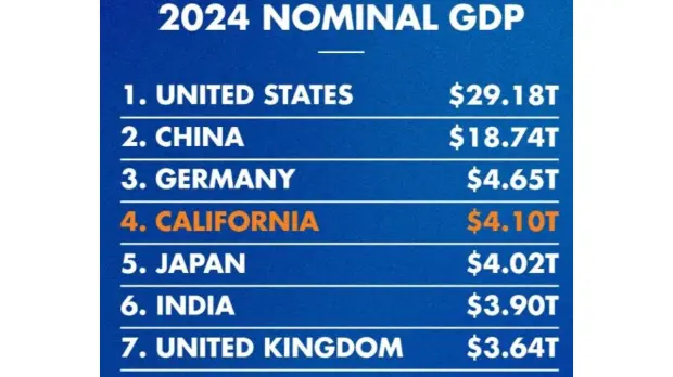 加利福尼亚现在是世界第四大经济体。印度预计将于2026年超越加利福尼亚