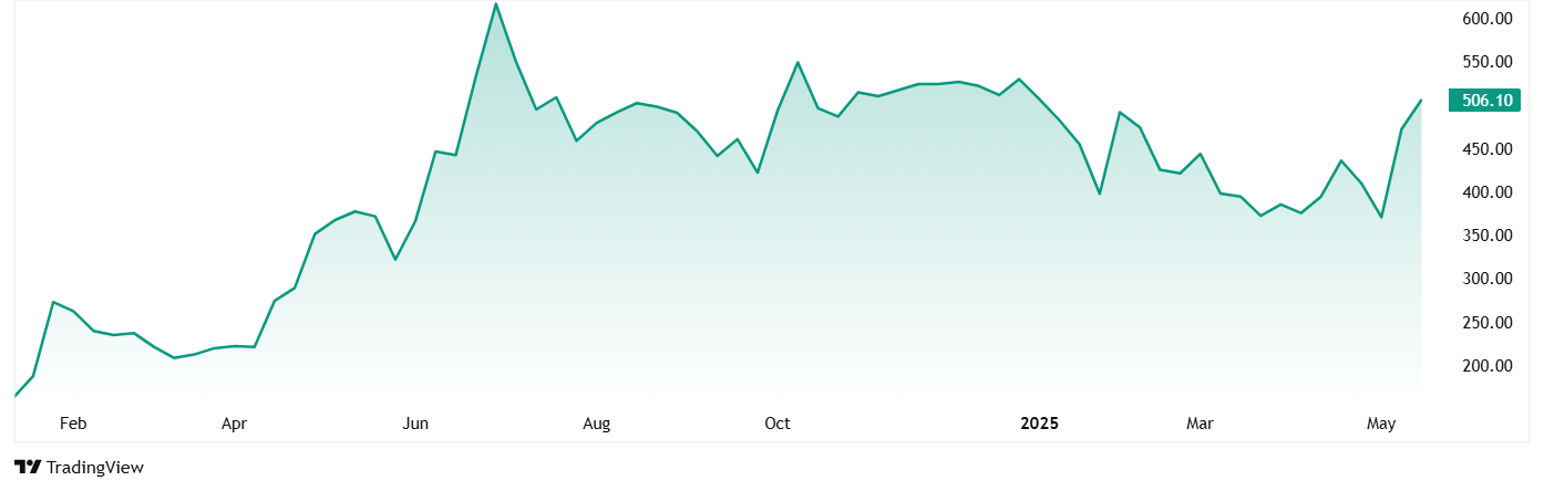 从2024年1月的上市价格约为150卢比,澳大利亚高级太阳能(印度)有限公司的股价跃升至当前价格为472卢比(截至19号截至19Th 2025年5月)。在大约16个月内,这是215%的跃升。