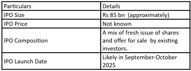 该公司已提交DRHP,并针对2025年9月至10月左右的上市。