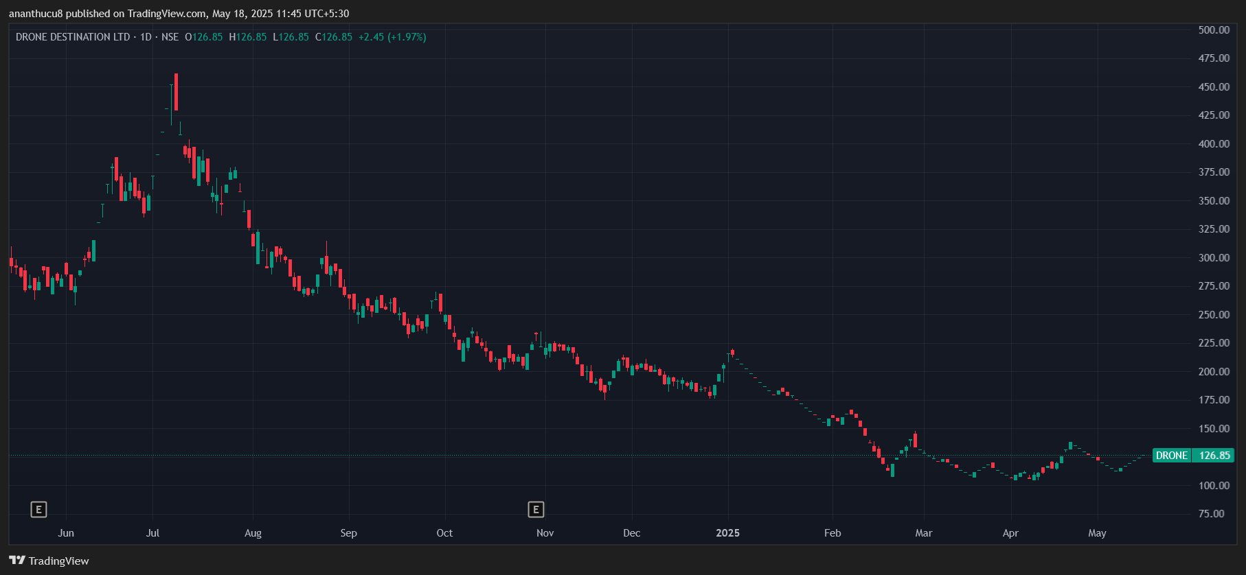 无人机目的地 自5月7日以来,已经上升了10%以上,至126.85卢比。这与去年的56%下降鲜明对比。该公司提供无人机的培训,操作,制造,维修和租金。
