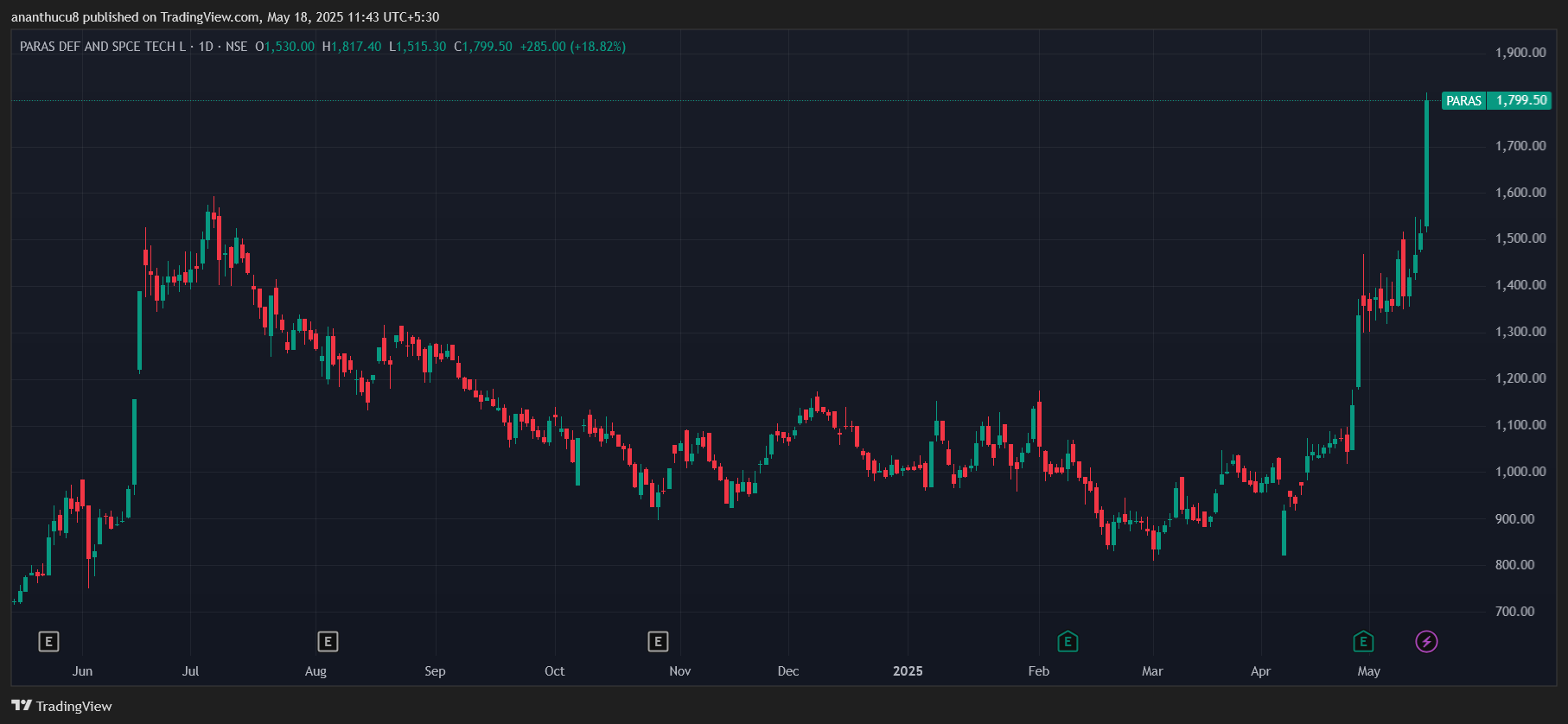 帕拉斯防御 也从该无人机股票集会中受益。在此期间,它的股票涨幅超过31%,达到1,817.40卢比。去年,该股票已超过132%。