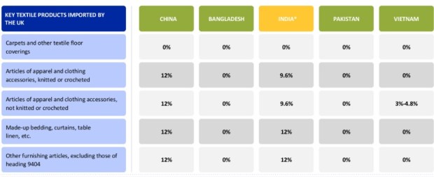 在2024年日历年期间,中国是英国最大的服装和家庭纺织品出口商,其份额约为25%,其次是孟加拉国22%,土耳其为8%,巴基斯坦为6.8%。现在,随着FTA的实施,与孟加拉国,越南和巴基斯坦等现有的免税访问国家状况相比,印度的服装和家庭纺织品的零访问访问量将具有一个公平的竞争环境。