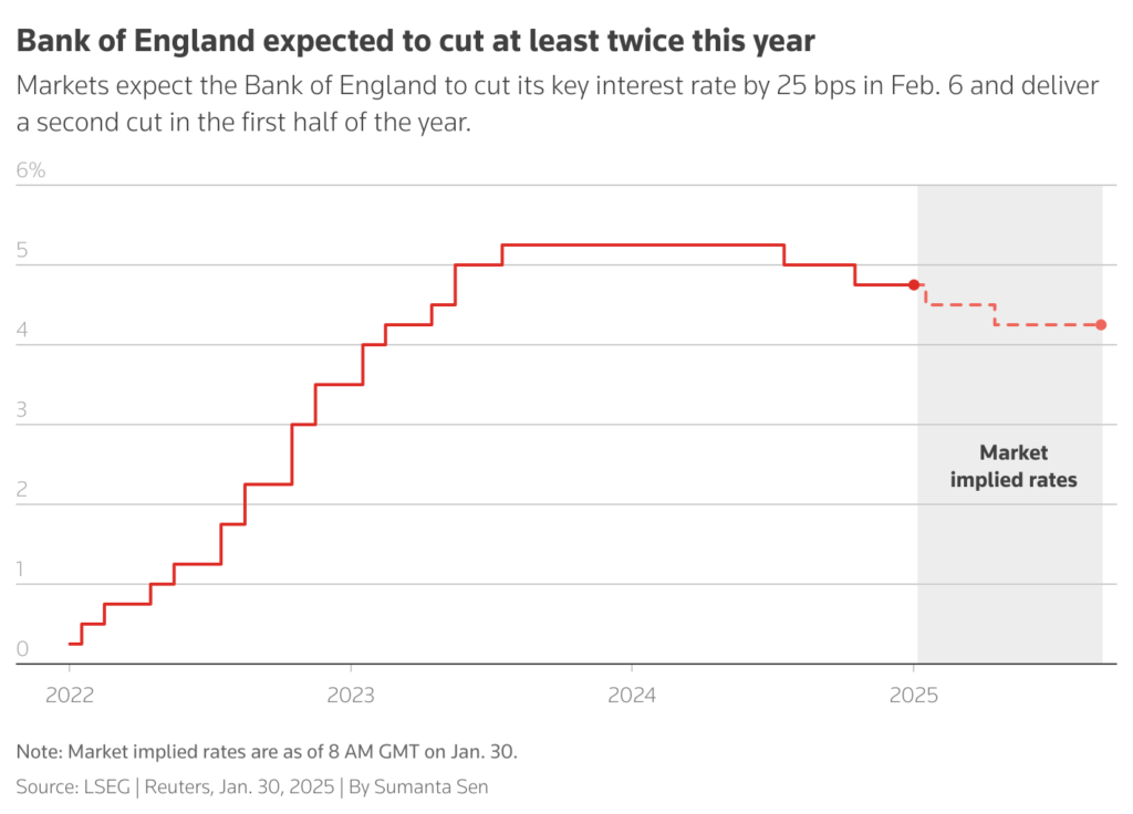 英格兰银行周四开会,设定利率。市场并没有完全削减四分之一点的价格,但经济学家似乎认为这可能是可能的结果。