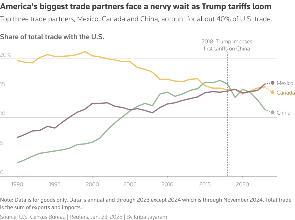 迄今为止,周六可能是最好的迹象,当时特朗普已承诺将加拿大和墨西哥征收25%的征税,直到非法移民和毒品芬太尼都停止越过边界。在关税的范围内是每年有限的美国货运货物。