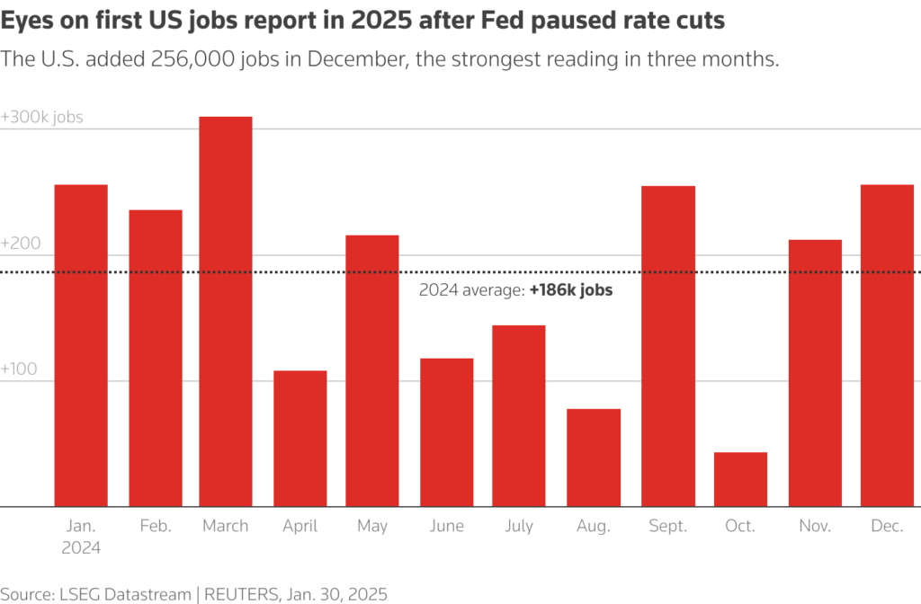 2月7日到期的每月美国就业报告是随着投资者评估进一步降低利率的前景以及戏剧性新的特朗普政府政策如何重塑劳动力市场的前景。