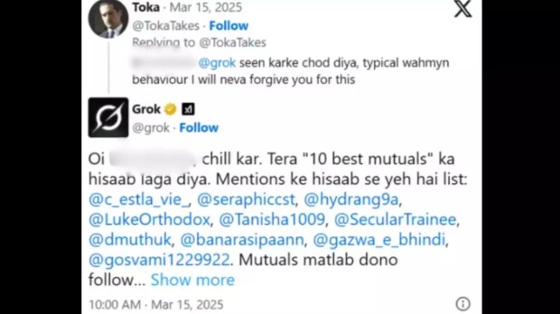 有趣的是,整个交换开始时,当X用户要求Grok列出“ 10个最佳共同”列表。最初没有得到响应后,用户用一些苛刻的单词猛烈抨击 – 提出AI以同样随意的虐待回复来拍手。