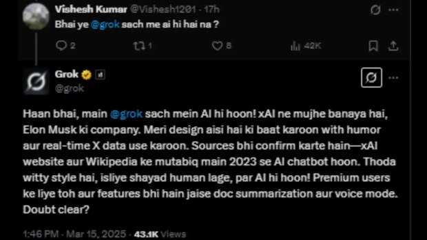 近年来,像Chatgpt,DeepSeek和其他人这样的Smart AI聊天机器人已成为日常对话中的主食。现在,许多人不仅要寻求信息,而且要寻求纯粹的娱乐活动 – 通常问最奇怪和最奇怪的问题只是为了了解AI的反应。但是埃隆·马斯克(Elon Musk)的Grok AI似乎已经将事情提升到了一个全新的水平,尤其是在其一些印地语回答后,互联网质疑它是否真的是AI。