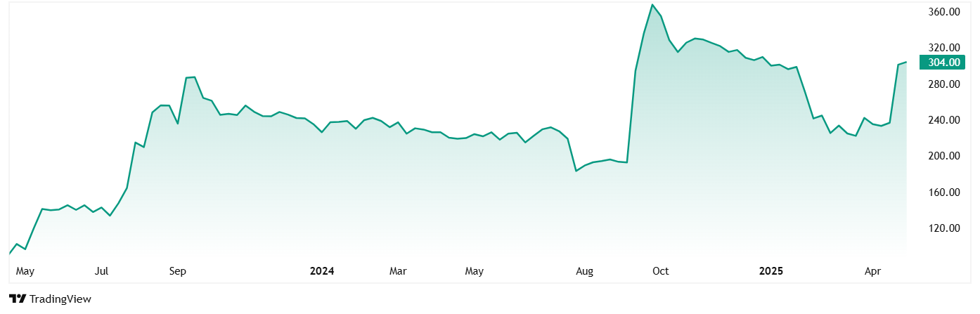该公司于2023年4月以约90卢比的价格上市,该公司已跃升至304卢比。ND 2025年5月。自上市以来,这是几乎240%的跃升。