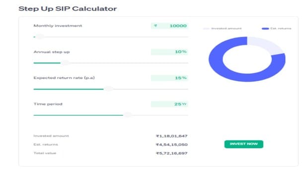 随着时间的推移,薪水随着时间的流逝,SIP贡献每年可以增加10%(升级)。这不仅可以提高整体投资金额,而且还可以增强长期复合的力量。这就是为什么早期开始并逐渐加强投资对于建立财富至关重要的原因。