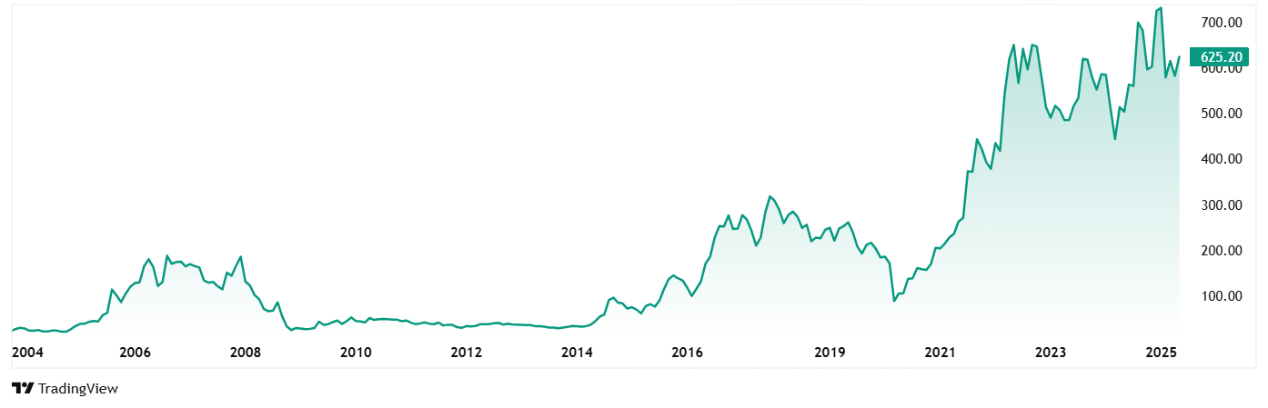 GHCL Ltd.的股价从2020年5月的100卢比飙升至525%,至625卢比,截至27Th 2025年5月。