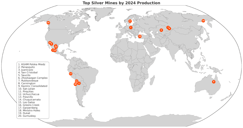 Cuprum Holding的Zhezkazgan综合体是哈萨克斯坦最大的银生产矿山,在2024年以14.05 Moz搅动。
