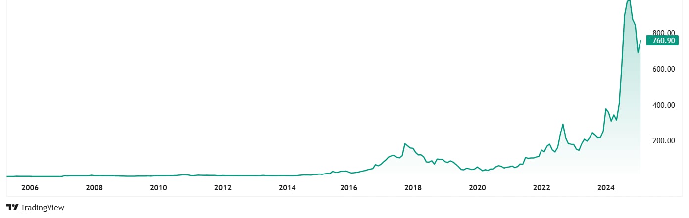 至于股价,当前价格为759卢比(如5Th 2025年2月),与55卢比约55卢比的5岁价格高出1,280%。