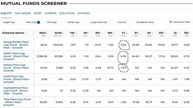 第三基金审查的Helios Flexi Cap Fund的任期仅为1年零10个月,因此无法获得长期收益。