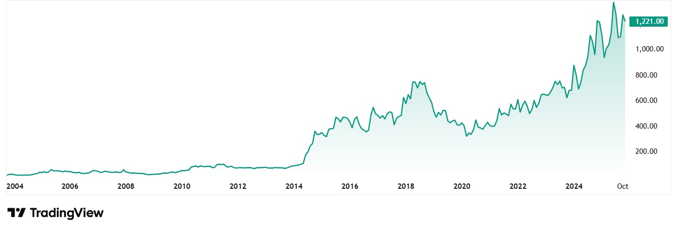 Jenburkt Pharmaceuticals Ltd 2020 年 11 月的股价约为 425 卢比,截至 6 日th 2025 年 11 月,价格为 1,215 卢比,上涨 185%。 5 年前投资该公司的 1 卢比(拉克)在今天相当于 2.9 卢比(拉克)。