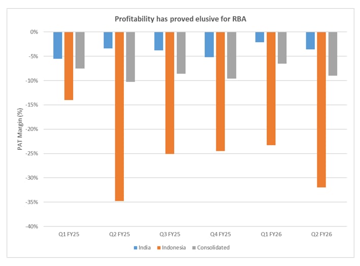 一年过去了,但情况似乎更加恶化。 2026 财年第二季度,印度尼西亚业务亏损 4.3 亿卢比,印度业务亏损环比扩大 75% 至 2 亿卢比,综合亏损仍高于 6 亿卢比。底部已经到来吗?投资者是否应该做好迎接更多痛苦的准备?