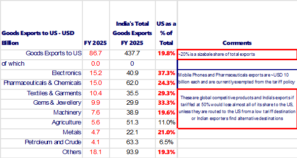 经济学家估计,如果美国大部分出口损失的大部分出口量将占GDP的0.5%,对印度GDP的总影响量为〜0.5%。