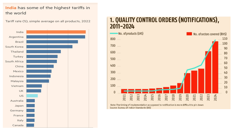 在过去的几年中,印度确实增加了进口关税,以寻求“ Atma Nirbharta” – 自我依赖并促进“在印度制造”。除了职责外,它是印度的官僚许可和允许拉吉系统的义务之外,还通知了更多产品以满足质量控制订单(QCO),这是遏制进口的手段。
