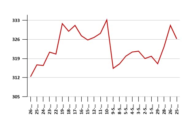 这是另一个被击倒的小型股票。股票从52周的高度为537卢比下降了42%。