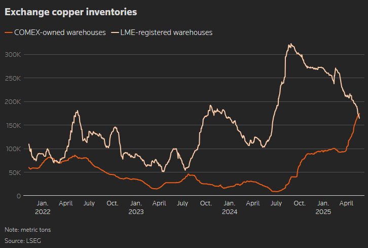 全球对铜库存的改组遵循美国总统唐纳德·特朗普(Donald Trump)在2月的一项指令,以对铜进口的可能关税进行调查,以重建美国生产对电动汽车至关重要的铜生产,电力传输和建设。