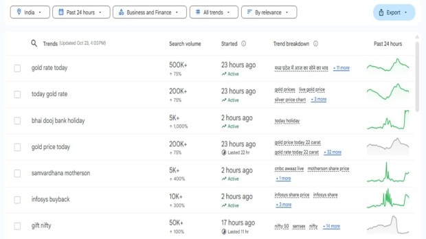 黄金价格仍然是谷歌趋势中搜索次数最多的关键词之一——首先是由于排灯节前的大幅上涨,然后是之后的突然下跌。