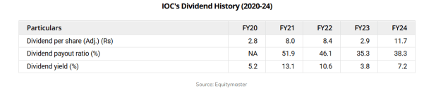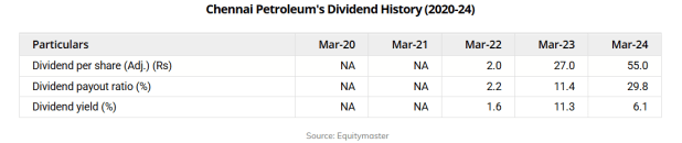 它的总股息为每股11.7卢比24财年。该年度的股息支付比率为38.3%。