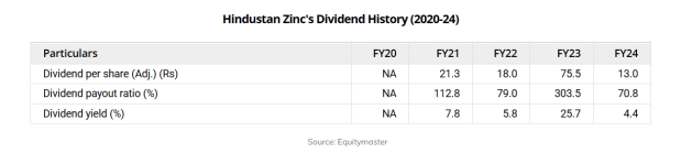 印度斯坦锌在过去五年中已向股东支付了创纪录的股息,平均股息为每股25.5卢比,股息支付比率为113.2%。