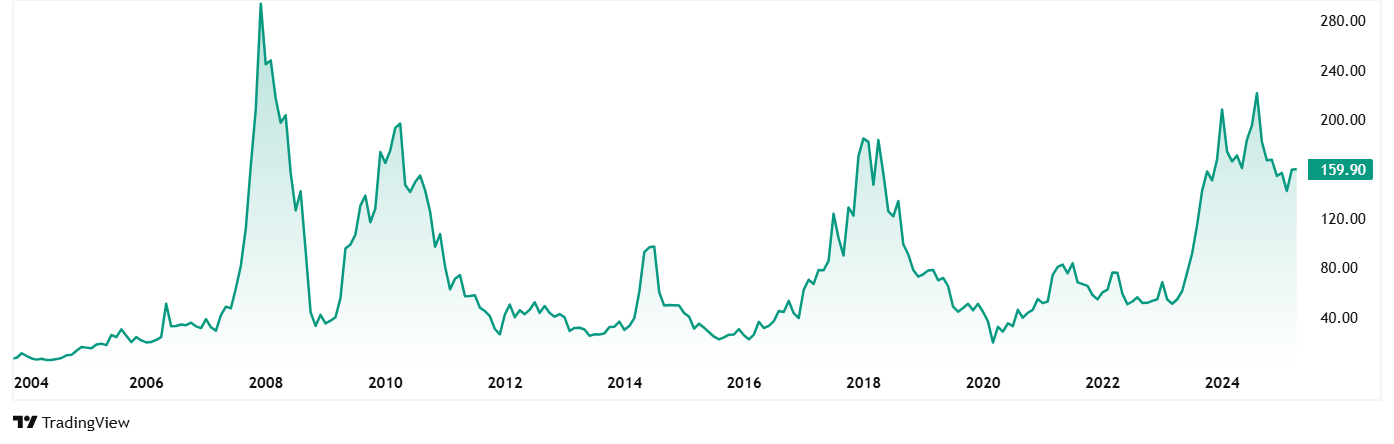 Prakash Industries的股价比其5岁卢比的24卢比到当前的价格为160卢比的566%左右(截至9次关闭时Th 2025年4月)。