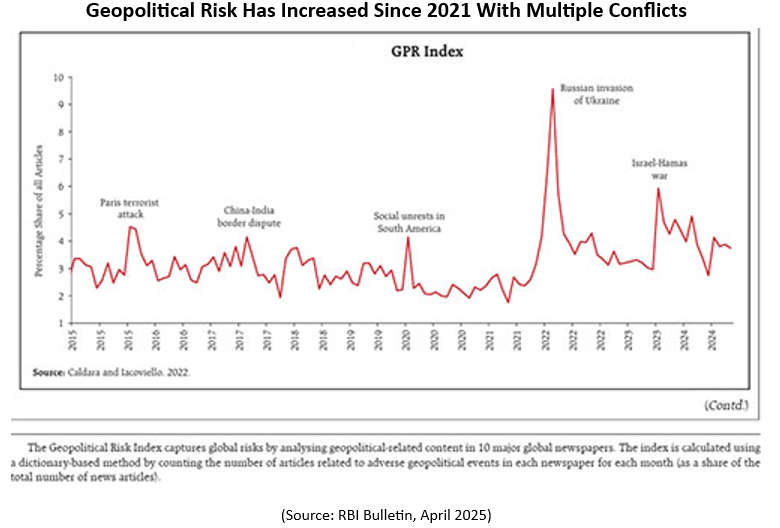 印度储备银行(RBI)指出,地缘政治冲突仍然是金融稳定的主要风险之一。