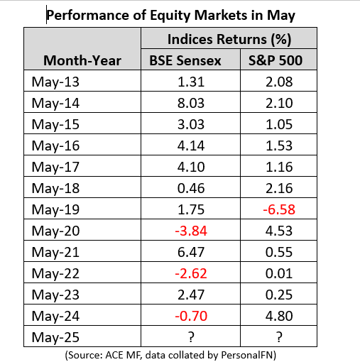 但是,自2013年以来,BSE Sensex在5月份的负面回报仅两次。在美国股票市场,标准普尔BSE 500在过去十二年中仅计入了一次负回报。