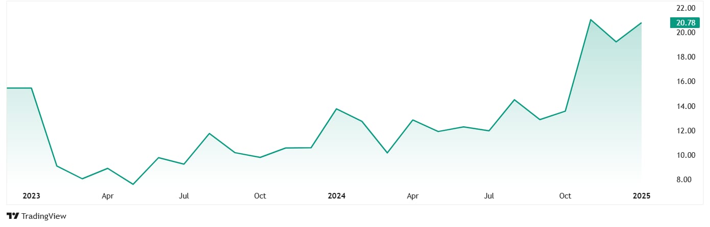 如您所见,在截至2024年9月和2024年12月的四分之一之间,FII持有巨大的跳跃。