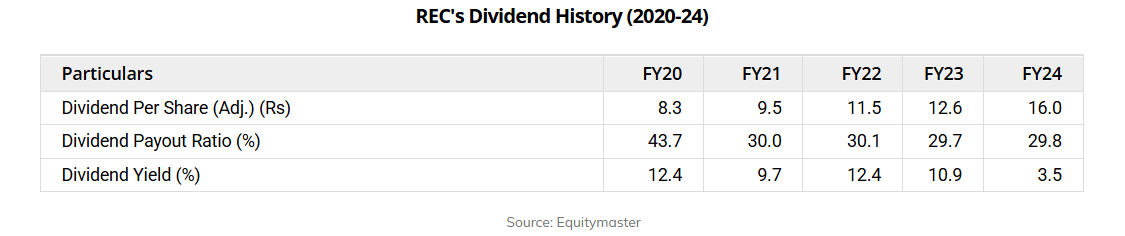 在过去的五年中,REC平均股息为135%,其每股股息平均为13卢比。