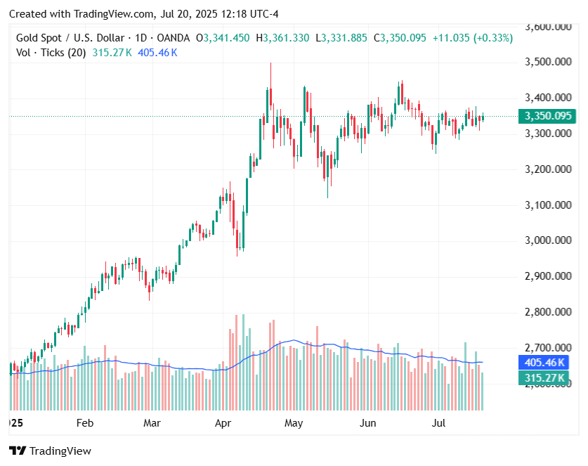 尽管黄金最近跌倒了,但CIBC资本市场仍然预计,黄金金属今年将达到新的高度,下半年的价格平均每盎司3,600美元。