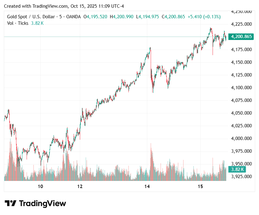 金价飙升至 4,200 美元上方,创历史新高