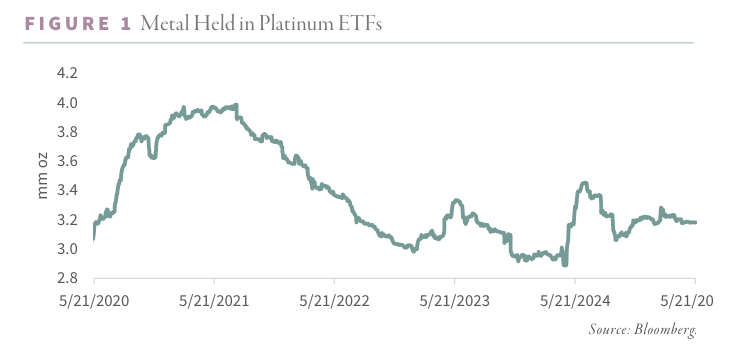 由于高利率和看跌情绪而崩溃的PGM的投资也可能反弹。铂金ETF(从2020年的高峰起,需求已缩小了四分之三的需求),从清算转变为积累,这表明了新的投资者兴趣的早期迹象。