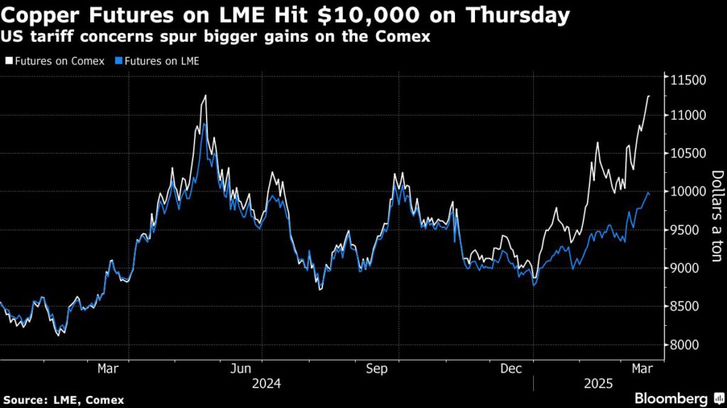 铜价徘徊在$ 10,000 $ 10,000之后,集会受到关税恐惧的驱动