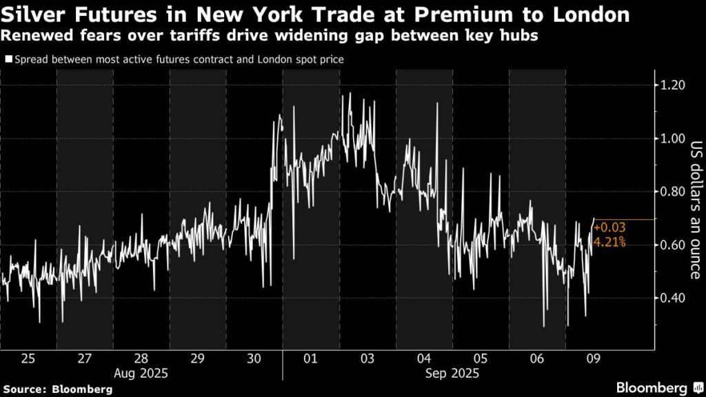 华盛顿上个月将白银归类为对美国国家安全至关重要的,这引起了担心,其新地位可能会引起唐纳德·特朗普总统的注意,唐纳德·特朗普(Donald Trump)在4月下令对关键矿物进行调查。随着交易员的价格冒着遭受关税的袭击的风险,纽约的期货在纽约高于国际基准,而持有人争先恐后地将白金属运送到美国以捕获保费。