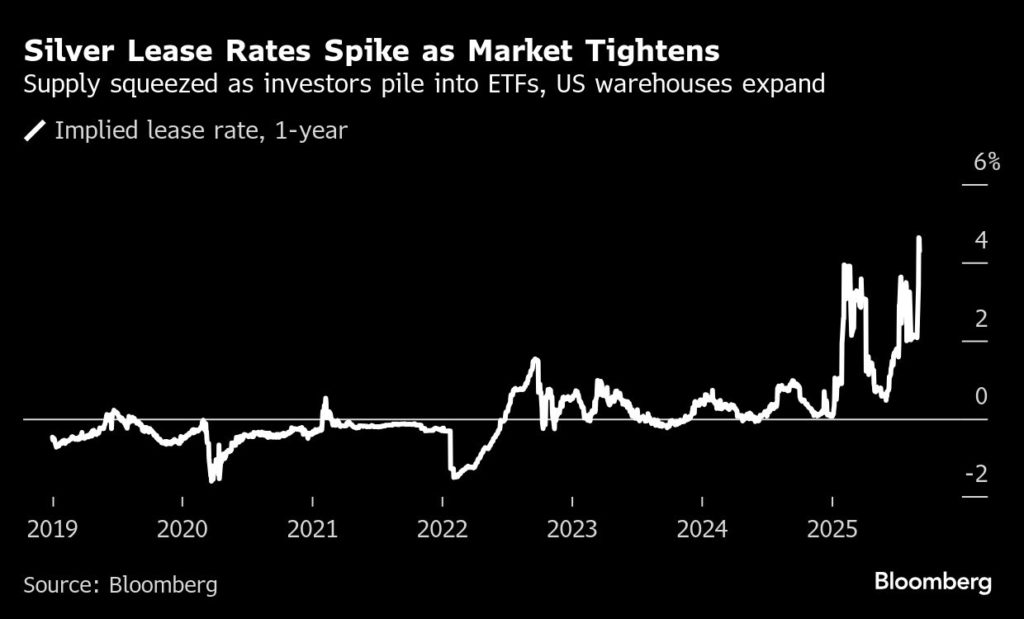 白银的租赁率飙升,再次颠覆了贵金属市场,交易员担心美国的关税可能会在伦敦已经很紧张的供应,因为价格脱位在主要交易中心之间重新出现。