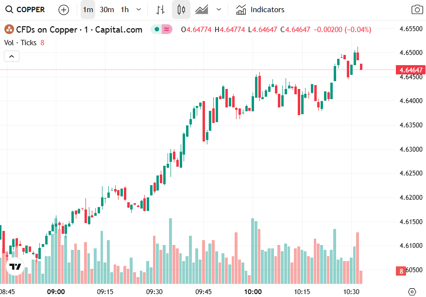 在美国,COMEX期货稳定,周三上午,合同最活跃的合同下滑0.14%,至每磅4.638美元(10,203美元/吨)。