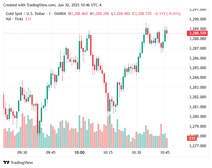 到达美国东部时间上午10:45,现货金上涨了0.4%,至3,287.10美元,在会议早些时候跌至3,248.42美元的1个月低点。