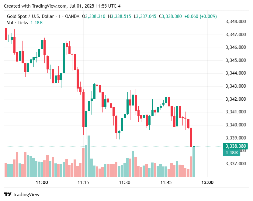 Stonex的EMEA和亚洲市场分析负责人Rhona O’Connell表示,黄金中的集会是“讨价还价,美元弱点(和)持续不确定性的功能”,内容涉及特朗普设定的7月9日关税截止日期。