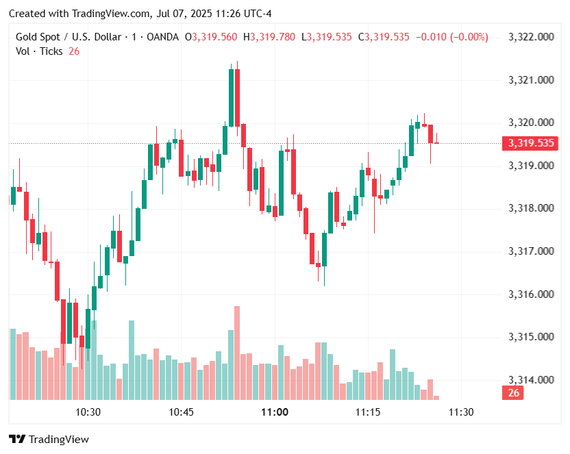 截至美国东部时间11:30截至11:30,Spot Gold下跌了0.5%,至3,319.77美元。早些时候,它已下跌了近1%,至3,297.15美元的一周低点。