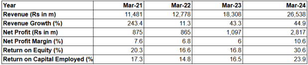 过去三年期间的平均ROE和ROCE分别为21.3%和18.4%。