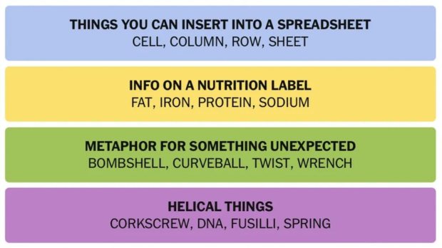 这是一个单词益智游戏,他们在4×4网格中给您16个单词。单词分为四组;每个集合都有一个共同的主题或连接它们的一些相似性。您必须识别属于同一集/主题的四个单词。例如,如果有16个单词,那么您会看到猎鹰,马,羚羊,豹子,那么您就会想到它们都有共同点。