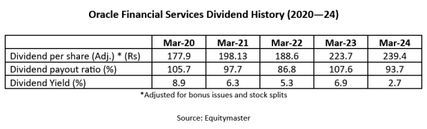 自2003年以来,该公司已宣布15个股息。在24财年,该公司宣布每股240卢比的股息,超过225卢比的23财年。