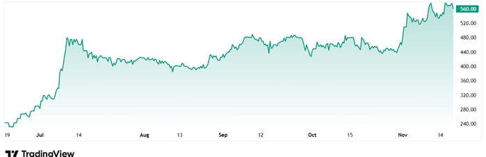 Monolithich India 2025年6月上市时的股价约为240卢比。截至18日th 2025 年 11 月,价格为 576 卢比,短短 3 个月内上涨了 140%。