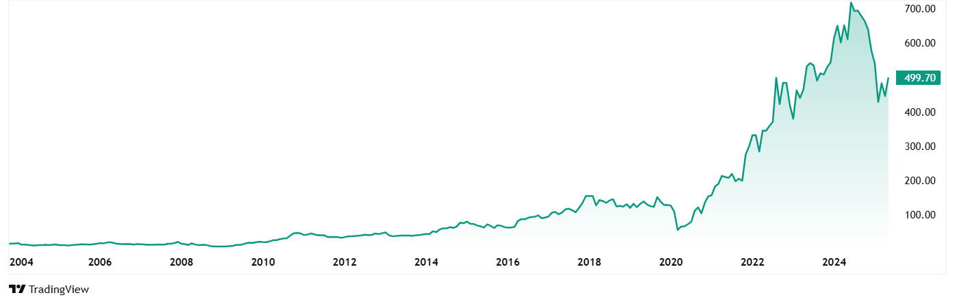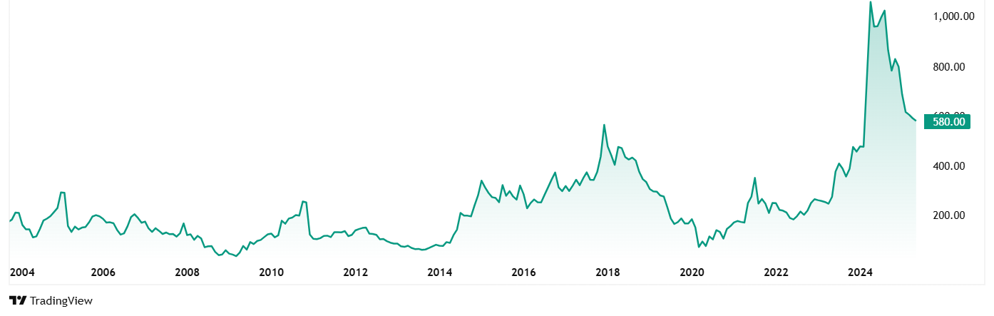 高科技齿轮股价在2020年5月的85卢比左右,其目前的价格为623卢比(如28Th 2025年5月),跃升为634%。 5年前投资于股票的1卢比卢比将在今天的7.4卢比左右。
