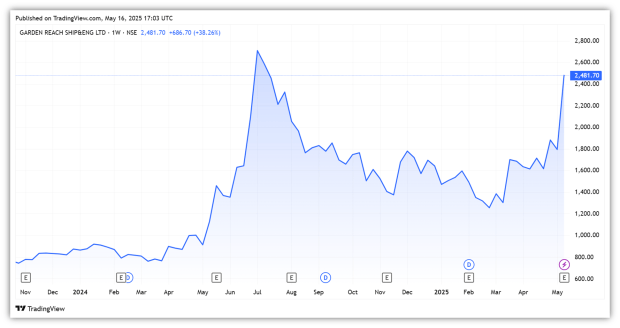 但是,花园覆盖率的估值也得到了提高。它以54倍的PE交易,超过300%的溢价,其中位数为16倍。相比之下,它与 Mazagon (52倍),并以折扣 科钦 (65倍)。