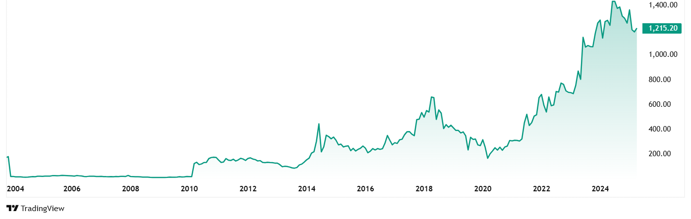 LG Balakrishnan目前的股价为1,216卢比,超过其5岁卢比的210卢比的480%。